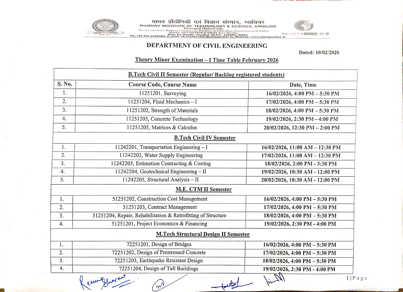 FIRST YEAR TIME TABLE 2022 admitted (NOV 2022) for B.Tech Civil Engineering | REVISED WEF 2.1.23 DOWNLOAD FILEFIRST YEAR TIME TABLE 2022 admitted (NOV 2022) for M.E / M.Tech Civil Engineering | REVISED 2.1.23 DOWNLOAD FILE |