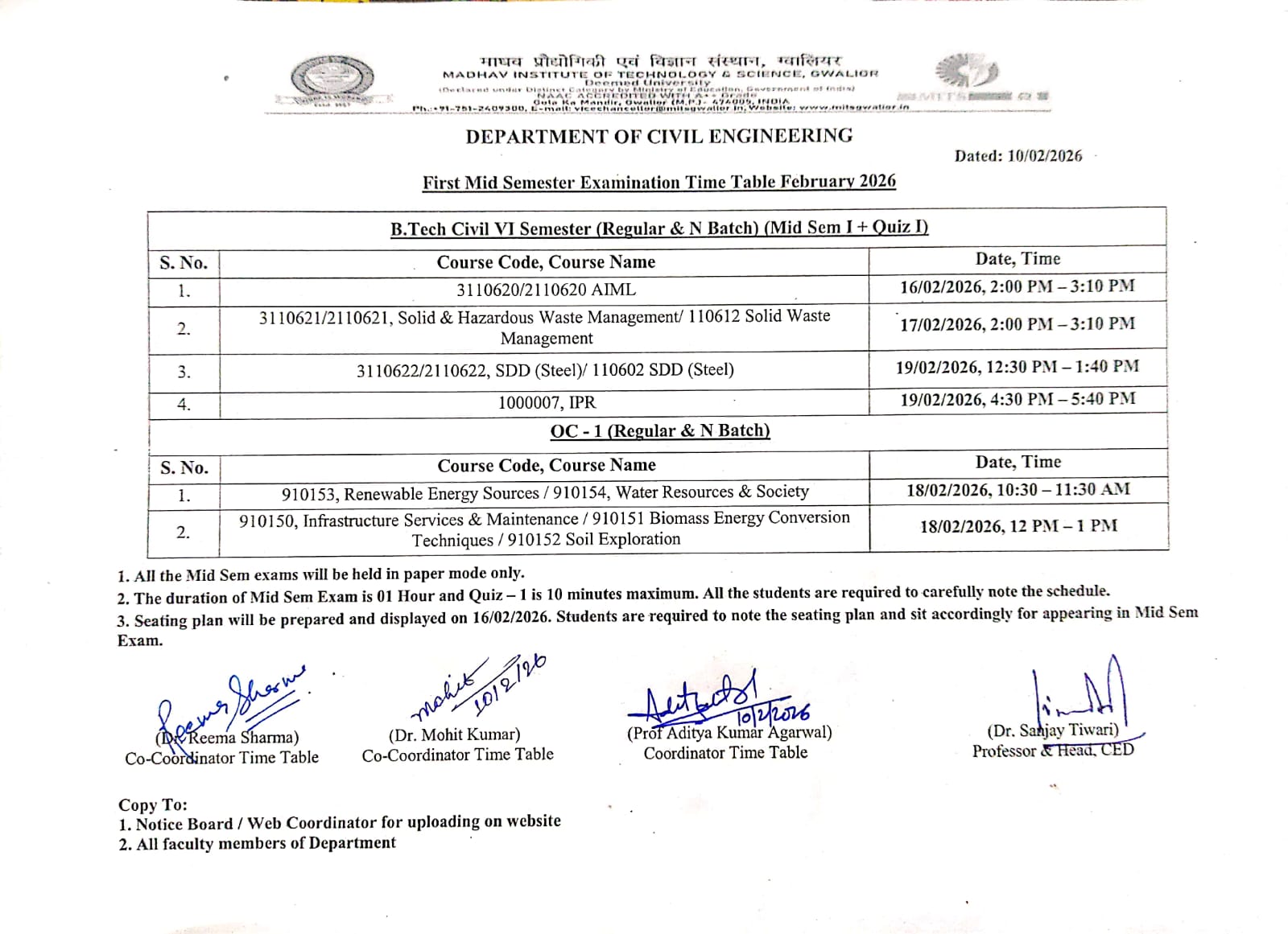 JAN - JUNE 2026 SESSION 1st Minor/ Mid Sem: UG/PG II & IV Sem | UG VIth Sem Semester Proficiency BTech II Sem May 2025 Make up (Theory) Evaluation (II Sem UG & PG) - May 2025 Minor - 2 (Theory) Evaluation (II Sem UG & PG) - April 2025 End Sem Practical Exam (Before 2024 admitted batch Regular/N Batch/Ex students) (Ist to VII Sem) - April 2025 Mid Sem Time Table - III (IV & VI Sem Students) - April 2025 Theory Proficiency End Sem Exam (Before 2024 admitted batch Regular/N Batch/Ex students (Ist to VII Sem) - April 2025 Mid Sem Time Table - II (IV & VI Sem Students) - April 2025 Minor - 1 (Theory) Evaluation (II Sem UG & PG) - March 2025 Mid Sem Time Table - I (IV & VI Sem Students) - Februray 2025 Major Evalauation Lab Courses BTech I Sem Jan 2025 ME I Sem Jan 2025 Semester Proficiency BTech I Sem Jan 2025 Theory Minor - II Exam Time Table (I Sem UG & PG Students) - December 2024 End Sem Practical Exam (Before 2024 admitted batch Regular/N Batch/Ex students) (Ist to VIII Sem) - November 2024 Theory Proficiency End Sem Exam (Before 2024 admitted batch Regular/N Batch/Ex students (Ist to VIII Sem) - November 2024 Theory Minor - I Exam Time Table (I Sem UG & PG Students) - November 2024 Mid Sem Time Table - III (III, V & VII Sem Students) - November 2024 Mid Sem Time Table - II (III, V & VII Sem Students) - November 2024 Mid Sem Time Table - I (III, V & VII Sem Students) - September 2024 Mid Sem Time Table - II First Year - May 2024 Special Mid Sem Time Table (II and III students) - April 2024 End Sem Practical Time Table (Ex students) - April 2024 End Sem Proficiency Time Table (Ex students II, III and Final Students) - April 2024 End Sem Practical Time Table (Regular Students II and III Year) - April 2024 End Sem Proficiency Time Table (Regular Students II and III Year) - April 2024 Mid Sem Time Table - II Second & Third Year - April 2024 Mid Sem Time Table - I First Year - March 2024 Mid Sem Time Table - I Second & Third Year - Feb 2024 End Sem Practical Time Table First Year - Jan 2024 End Sem Proficiency Time Table First Year - Jan 2024 Mid Sem Time Table - II First Year - Dec 2023 Mid Sem Time Table - I First Year - Nov 2023 End Sem Practical Exam Time Table Second, Third and Final Year - Nov 2023 End Sem Proficiency Time Table Second, Third and Final Year -Nov 2023 Mid Sem Time Table - II Second, Third and Final Year - October 2023 Mid Sem Time Table - I Second, Third and Final Year - September 2023 End Sem Practical & Proficiency Time Table First Year - July 2023 Mid Sem Time Table - II First Year - June 2023 Mid Sem Time Table - I First Year - May 2023 End Sem Practical Time Table - April 2023 End Sem Proficiency Time Table - April 2023 Second Mid Sem Time Table - April 2023 First Year Mid Sem Time Table - I January 2023 First Year Mid Sem Time Table - II February 2023 First End Sem Proficiency Exam Februrary 2023 First End Sem Practical Exam February 2023 Mid Sem Time Table - I September 2022 Mid Sem Time Table - II November 2022 End Sem Proficiency Exam November 2022 End Sem Practical Exam November 2022 |